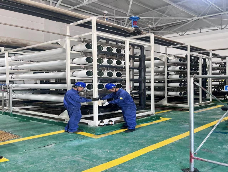 8月,高溫天氣席卷蘭州新區(qū),連續(xù)幾天30℃的高溫使人仿佛置身蒸籠之中,在化水車間一級反滲透膜柱更換檢修現(xiàn)場,機務檢修員工頂著比室外更要悶熱和潮濕的環(huán)境,與檢修進度展開了一場鏖戰(zhàn)。