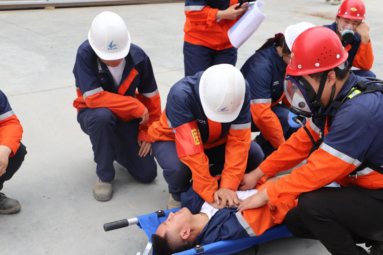 演練從實(shí)戰(zhàn)出發(fā),現(xiàn)場(chǎng)總指揮劉鵬宣布啟動(dòng)專(zhuān)精特新公司泄漏中毒應(yīng)急預(yù)案后,各應(yīng)急救援立即展開(kāi)行動(dòng):現(xiàn)場(chǎng)保衛(wèi)組立即進(jìn)行人員疏散和現(xiàn)場(chǎng)警戒、后勤保障組攜帶應(yīng)急救援物資迅速抵達(dá)現(xiàn)場(chǎng)隨時(shí)準(zhǔn)備補(bǔ)給救援物資、醫(yī)療救護(hù)組第一時(shí)間將中毒受傷人員經(jīng)過(guò)簡(jiǎn)單救護(hù)后送至救護(hù)車(chē)、通訊保障組調(diào)試所有通訊設(shè)備保證救援過(guò)程通訊暢通、事故搶險(xiǎn)組戴空氣呼吸器,身穿重型防化服攜帶堵漏工具在現(xiàn)場(chǎng)利用氯氣捕消器,水幕水帶、專(zhuān)業(yè)堵漏工具等進(jìn)行搶險(xiǎn)處置……救援人員各司其職,各環(huán)節(jié)有條不紊、井然有序。經(jīng)過(guò)20分鐘的排險(xiǎn)、噴淋,氯氣泄漏成功處置,環(huán)境檢測(cè)空氣正常,演練結(jié)束。