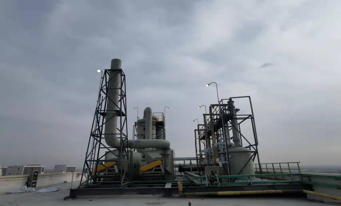 甘肅朗瑪旗云科技有限公司醫(yī)藥農(nóng)藥新材料中間體生產(chǎn)車間是化藥原料生產(chǎn)車間,車間生產(chǎn)過程中揮發(fā)的有機溶劑和物料粉塵對環(huán)境有較大的污染,根據(jù)環(huán)保部門要求,此類氣體需要收集后經(jīng)過有效處理才能排放。因此車間廢氣處理工作是重中之重,為確保未投產(chǎn)車間廢氣處理工程順利實現(xiàn)既定目標,項目部進行細致周密的施工準備。施工期間,項目部技術(shù)人員、業(yè)主在現(xiàn)場加強協(xié)調(diào)、監(jiān)督和指導工作,建筑工人們冒著嚴寒加緊作業(yè),確保工程進度,為項目順利完成進一步創(chuàng)造了條件。