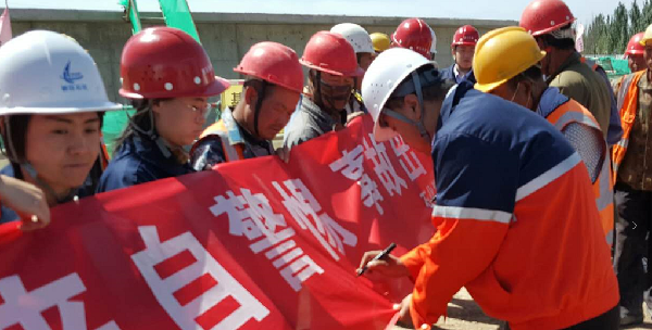 活動(dòng)中,博石環(huán)保公司組織全體職工及施工監(jiān)理單位工作人員在宣傳條幅上簽字,對工作中履行的安全生產(chǎn)職責(zé)作出承諾。博石環(huán)保公司總經(jīng)理朱伯麟結(jié)合今年“消除事故隱患,筑牢安全防線”的安全生產(chǎn)月活動(dòng)主題,圍繞“責(zé)任落實(shí)、隱患排查、風(fēng)險(xiǎn)管控、應(yīng)急處置”等內(nèi)容進(jìn)行安全宣講。