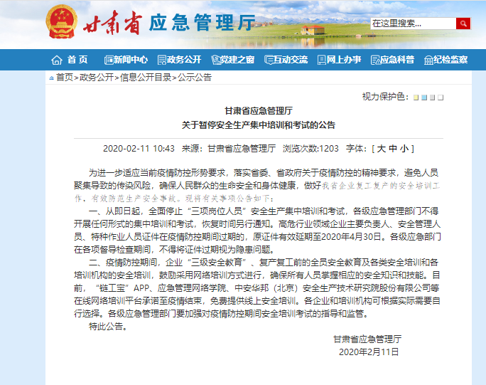 為全面落實疫情防控和安全培訓(xùn)工作要求,蘭州新區(qū)化學(xué)工程有限公司培訓(xùn)中心結(jié)合疫情防控和復(fù)產(chǎn)復(fù)工實際,根據(jù)甘肅省應(yīng)急管理廳2月11日發(fā)布的《關(guān)于暫停安全生產(chǎn)集中培訓(xùn)和考試的公告》相關(guān)要求,在疫情期間免費為新區(qū)企業(yè)提供線上復(fù)工復(fù)產(chǎn)專題安全培訓(xùn)。
