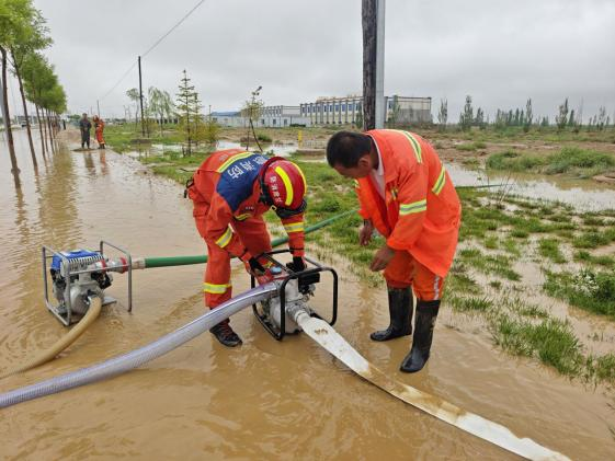 面對(duì)這一緊急情況,石化集團(tuán)久泰服務(wù)公司迅速聯(lián)合秦川園區(qū)消防隊(duì)展開(kāi)搶險(xiǎn)救援行動(dòng),此次應(yīng)急救援隊(duì)伍共計(jì)人力108人,清掃車(chē)2輛,水車(chē)4輛,消防車(chē)2輛,水泵5臺(tái),處理路面積水區(qū)域 8 處,累計(jì)抽水900余方,對(duì) 6 處路面淤泥進(jìn)行了清理,并成功恢復(fù)車(chē)輛通行道路 3 處。